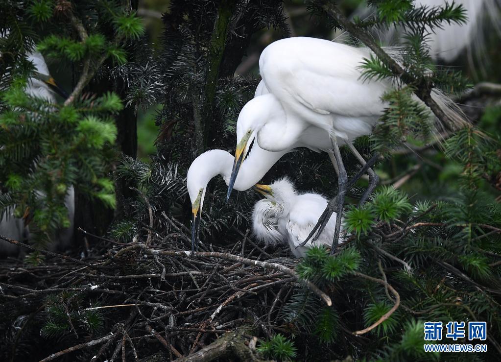 近期,在位于鄱陽(yáng)湖畔的江西省南昌市新建區(qū)象山森林公園內(nèi),已安家筑巢的鷺鳥進(jìn)入孵化哺育旺季。象山森林公園有著“鷺鳥王國(guó)”的美譽(yù),每年都會(huì)吸引白鷺、蒼鷺、夜鷺等種類的鷺鳥飛抵棲息和繁衍后代。