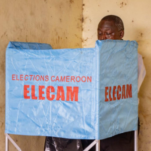 10月12日,在喀麦隆首都雅温得,一名选民参加投票。新华社发(科普索摄)