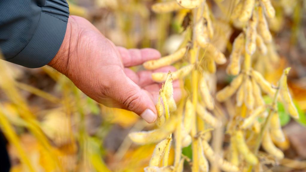 秋日清晨,雨丝细密。没等雨停,山东省济宁市嘉祥县纸坊镇大豆种植户宋新萌就深一脚浅一脚地蹚进田里清理沟渠:“地里积水不等人,得赶紧疏通沟渠排出去。”