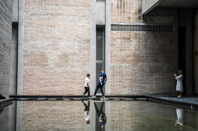 9月13日,游客在塱头村春阳台艺文中心拍照。