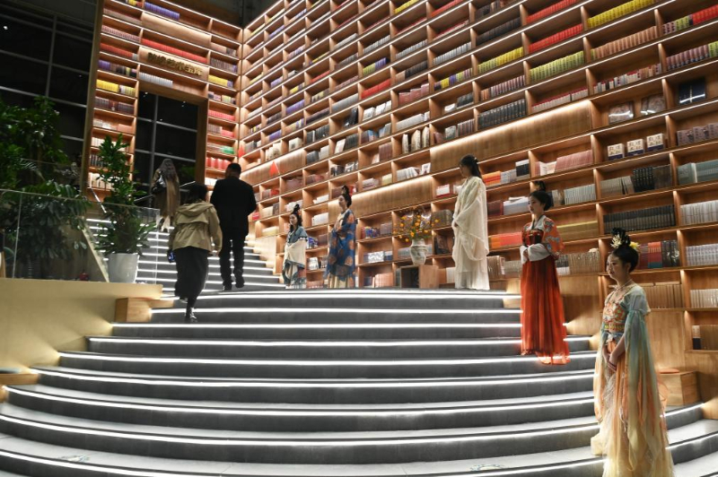 10月11日,游客在敦煌书局参观游览。