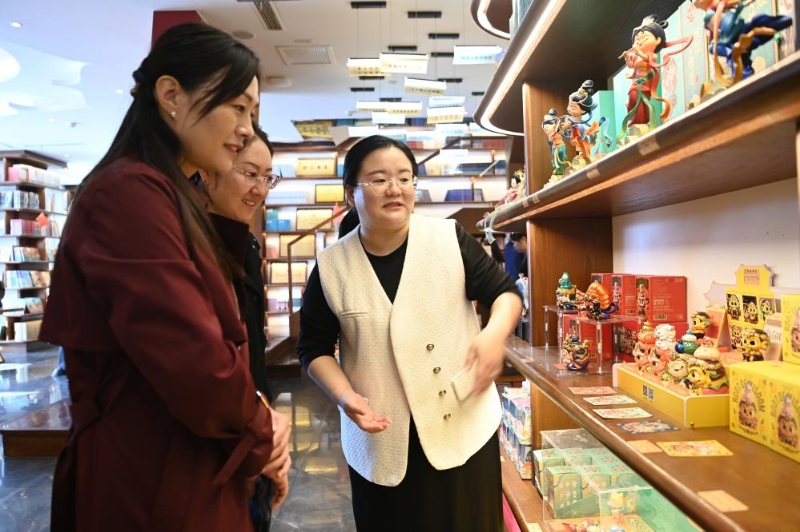 10月11日,游客在敦煌书局选购文创产品。