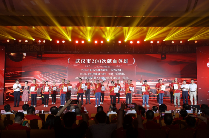 活动中,简昊、景京、简亦喆一家三口等6个家庭荣获“武汉市无偿献血优秀家庭”称号;韩志强等22位献血并捐献造血干细胞的爱心人士荣获“武汉市无偿献血造血干细胞优秀志愿者”称号;卢闪闪等24位献血者荣获“武汉市连续10年捐献全血献血英雄”称号;李妮娜等28位献血者荣获“武汉市200次献血英雄”称号;熊维明等7位献血者荣获“武汉市300次献血英雄”称号。