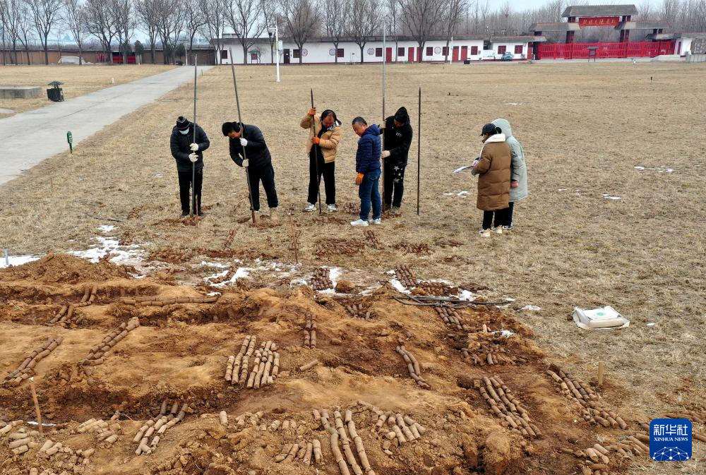 在河南安阳殷墟王陵遗址,工作人员在勘探围沟范围(2024年2月24日摄)。新华社记者 李安 摄