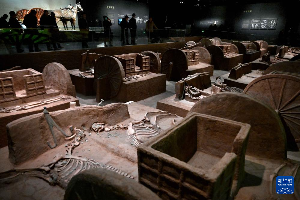 2024年2月26日,参观者在河南安阳殷墟博物馆新馆内观看车马遗迹。新华社记者 李安 摄