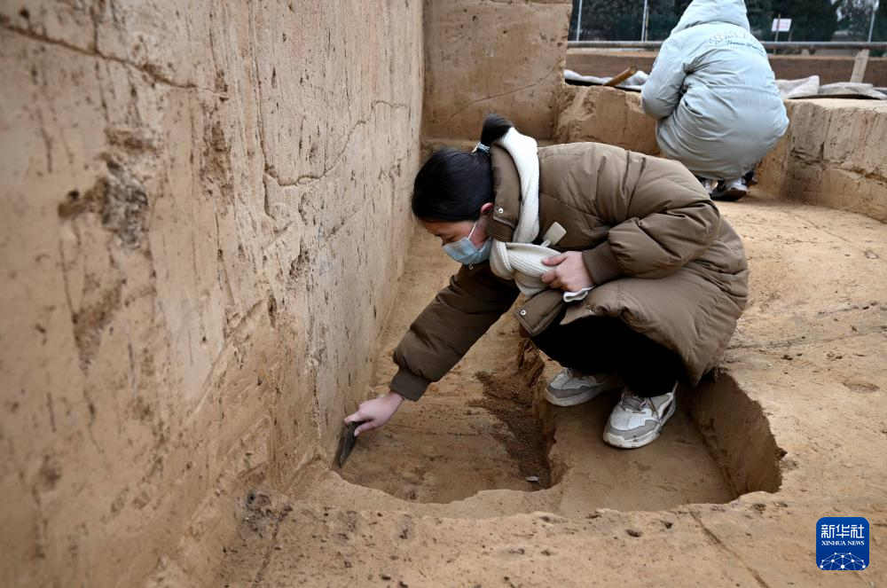 工作人员在河南安阳殷墟王陵遗址进行发掘作业(2024年2月24日摄)。新华社记者 李安 摄