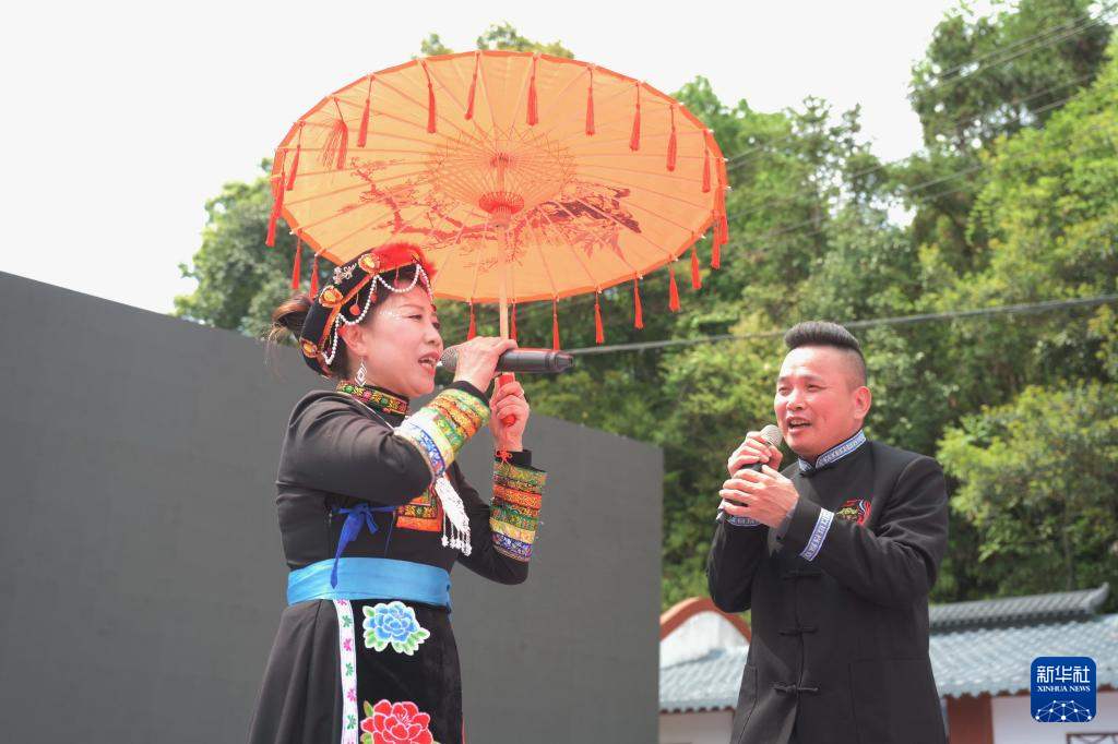 4月11日在活动现场拍摄的畲歌对唱表演。