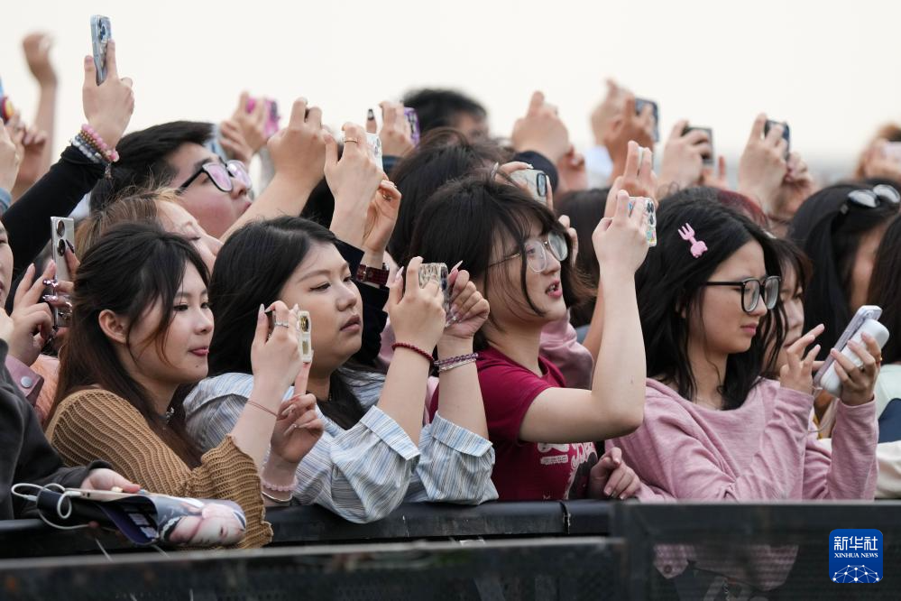 4月13日,观众在音乐节活动现场休闲(无人机照片)。
