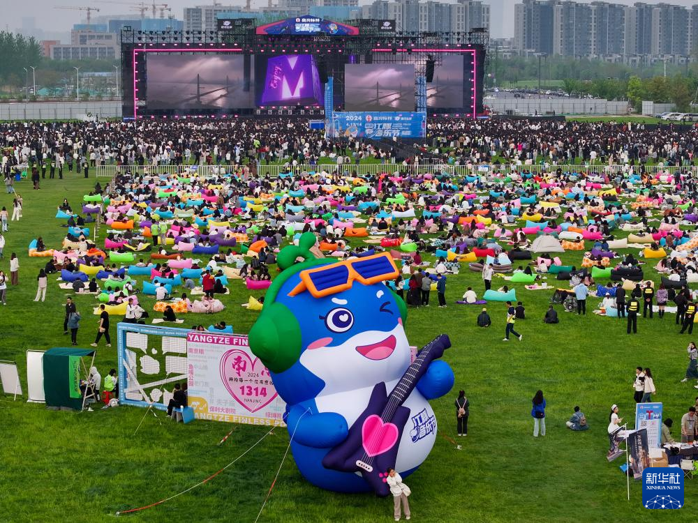 这是4月13日拍摄的2024南京江豚音乐节活动现场(无人机照片)。