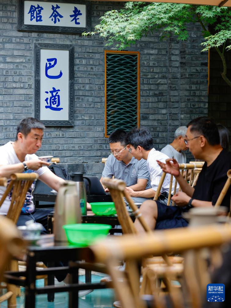 人们在成都太古里大慈寺内的茶社喝茶(2023年6月7日摄)。
