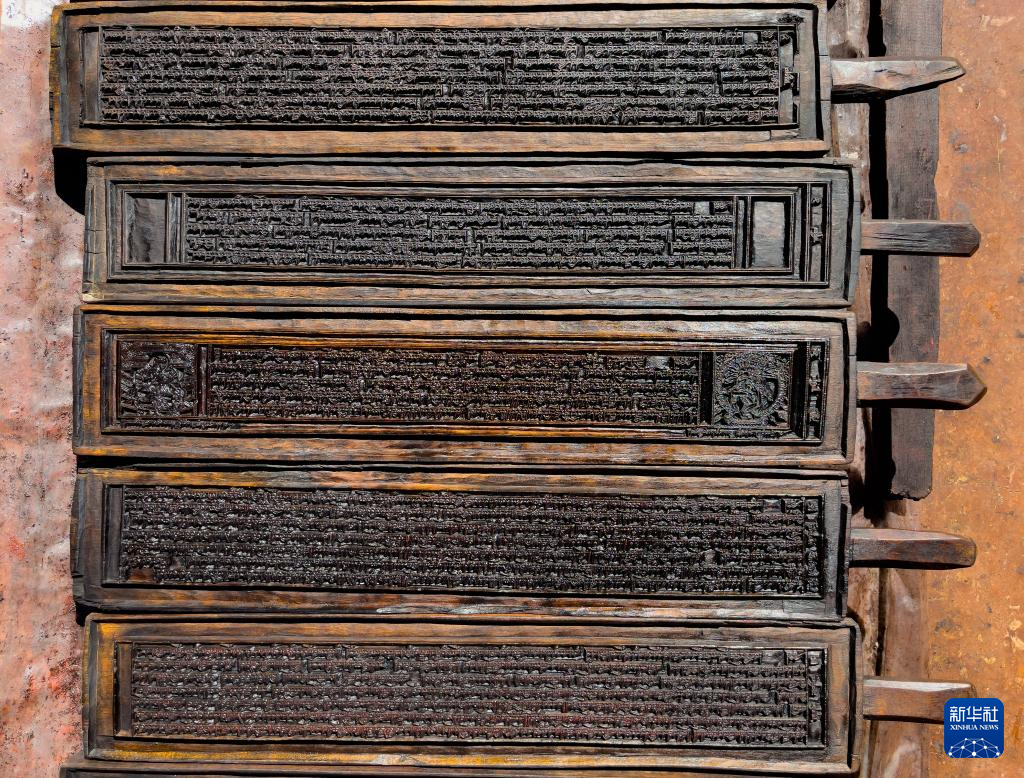 在四川省甘孜藏族自治州德格县拍摄的德格印经院院藏雕版(2021年10月3日摄)。