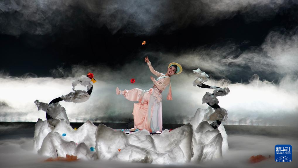 6月19日在深圳举行的第十二届中国杂技金菊奖全国魔术·滑稽比赛上拍摄的魔术《梦龘鹤湖》。