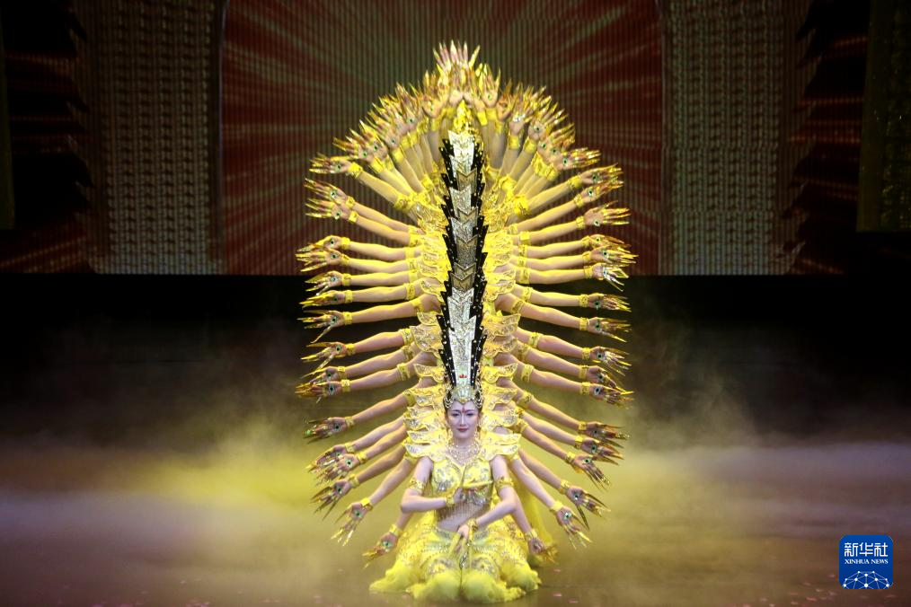 7月3日,演员在大型情景音画剧《千手千眼》中表演。