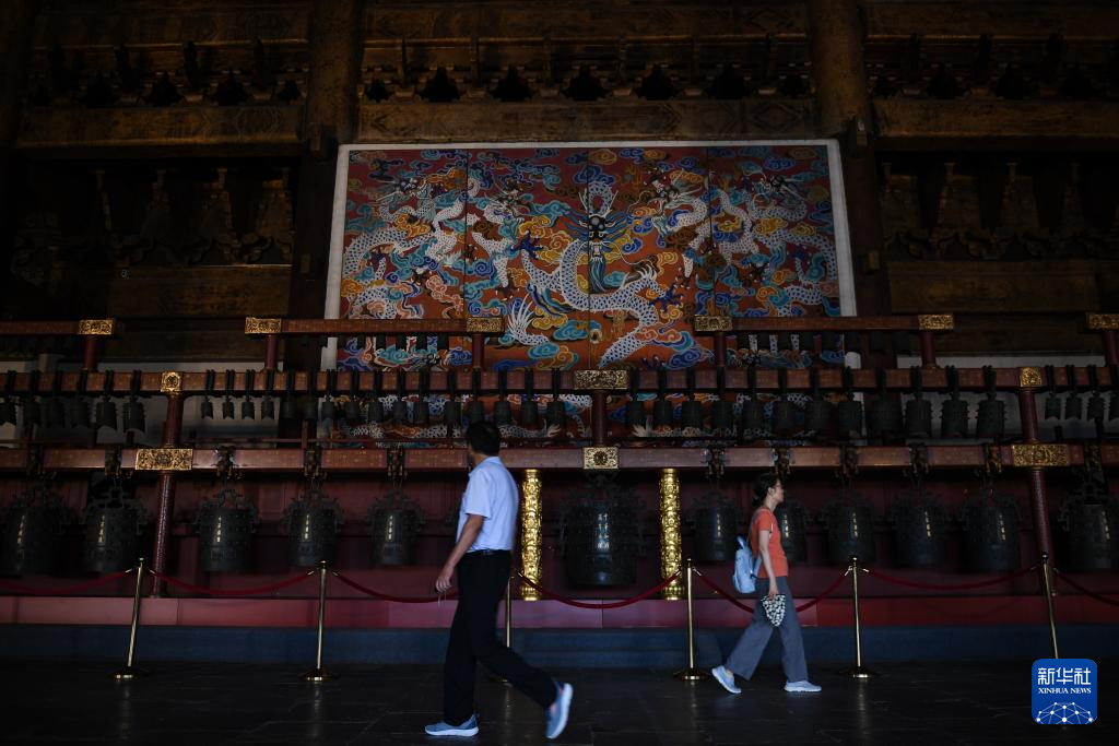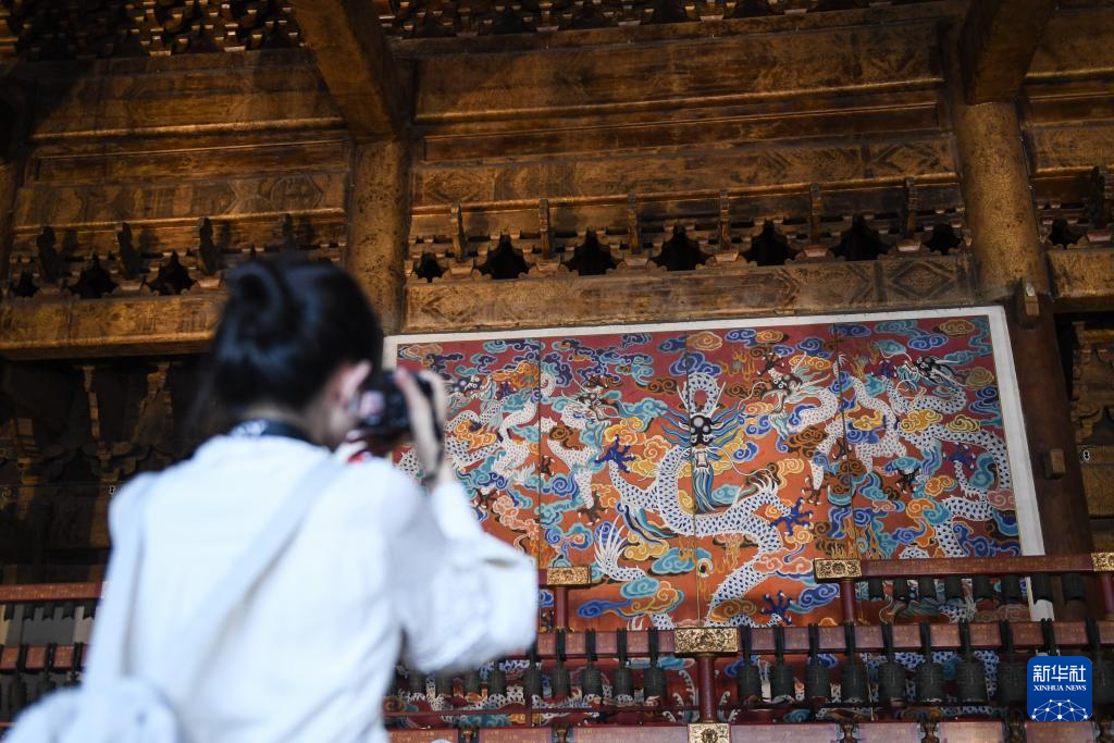 近日,北京太庙享殿恢复对外开放,吸引不少游客参观。享殿建于明永乐年间,是太庙的主体建筑,游客在殿中可亲身感受其宏大庄严的建筑特点。目前,享殿内正在举办“太庙中轴:太庙历史文化专题展”,从建筑礼制和祭祀文化两个角度,介绍太庙的历史与文化。