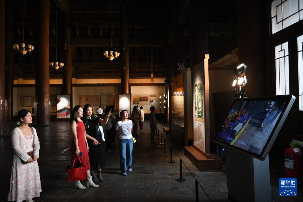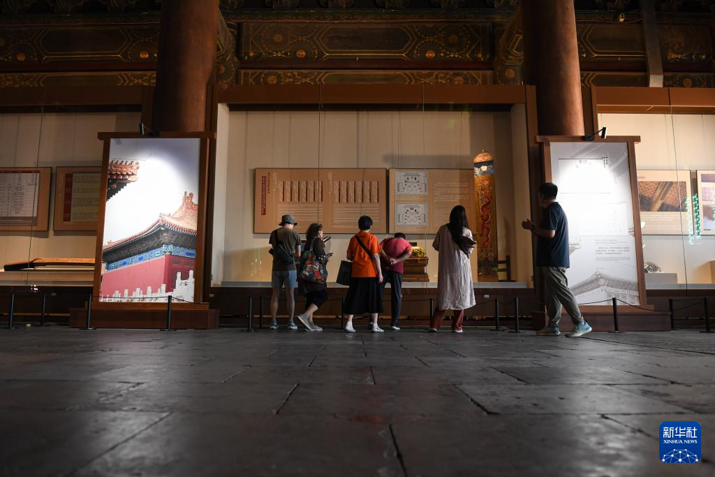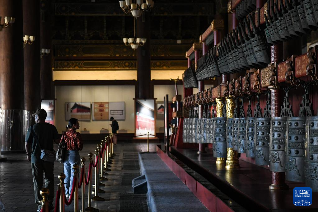9月19日,游客在太庙享殿观看“太庙中轴:太庙历史文化专题展”。