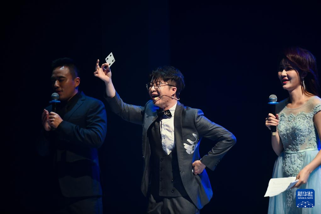 9月25日,主持人表演纸牌魔术并与观众互动。