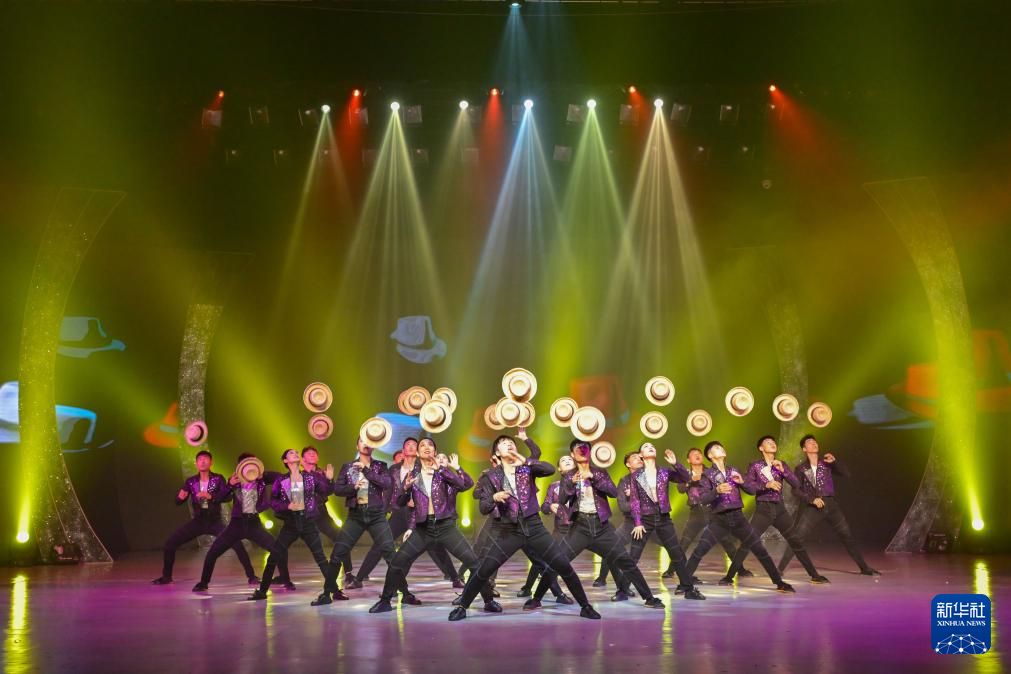 9月25日,山东省杂技团演员在开幕式上表演杂技《草帽》。