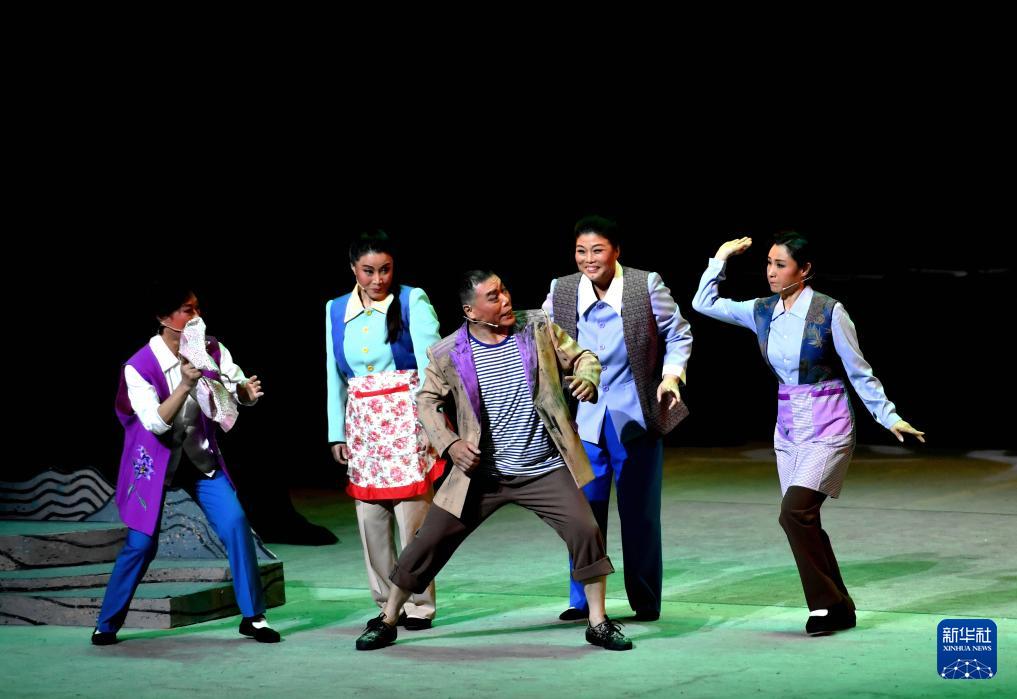 9月27日晚,演员在河北梆子现代戏《山韵》中表演。