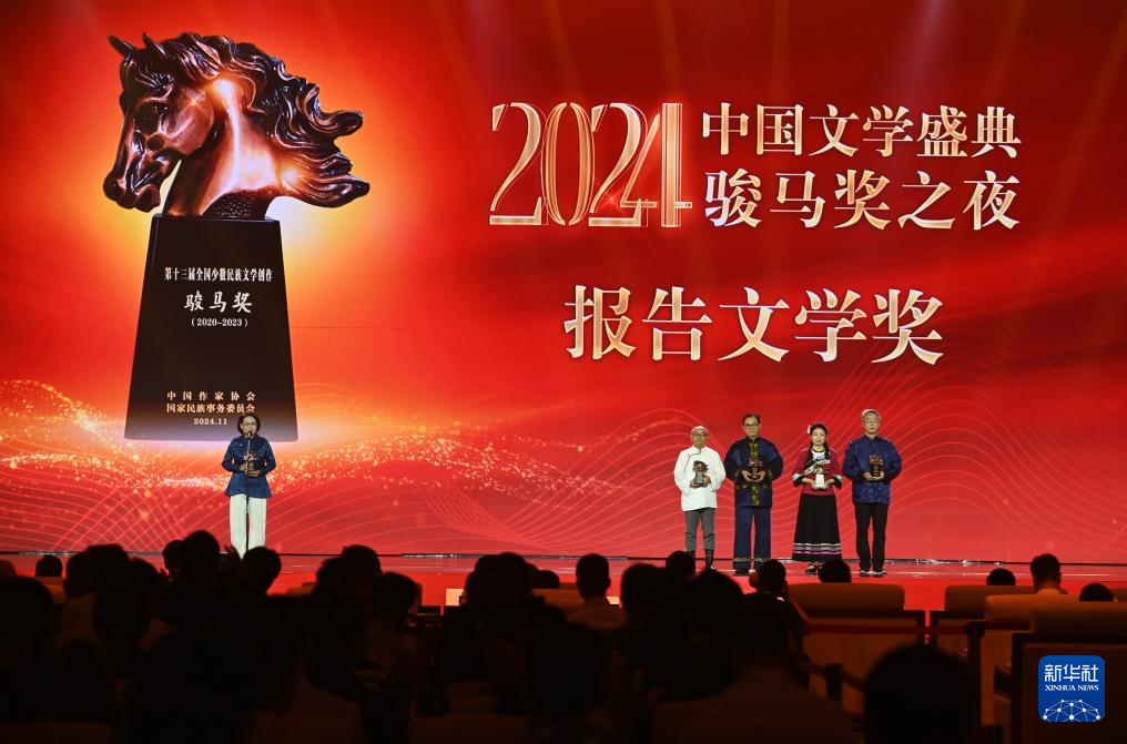 11月16日晚,由中国作家协会、国家民族事务委员会、广西壮族自治区人民政府共同主办的“2024中国文学盛典·骏马奖之夜”在广西南宁国际会展中心举行。