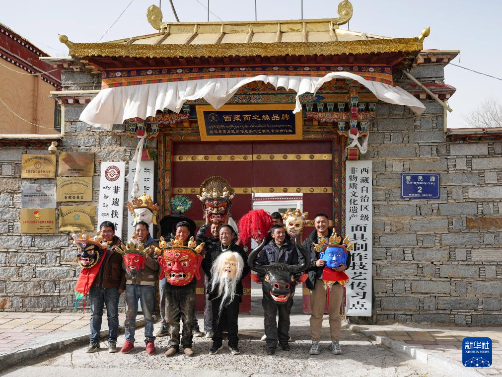 12月9日,拉萨布制面具制作技艺西藏自治区级非遗传承人西洛在合作社门前的空地上和同事一起检查做好的西藏传统面具。西洛是拉萨布制面具制作技艺的西藏自治区级非遗传承人,他制作的面具广泛运用于藏戏表演中。2012年,在政府的扶持下,西洛创办了拉萨市达孜区雪乡扎西岗传统手工艺合作社。近年来,合作社不断吸纳当地群众学习面具制作技艺,不仅为当地群众提供就业机会,同时也助力非物质文化遗产的保护和发展。