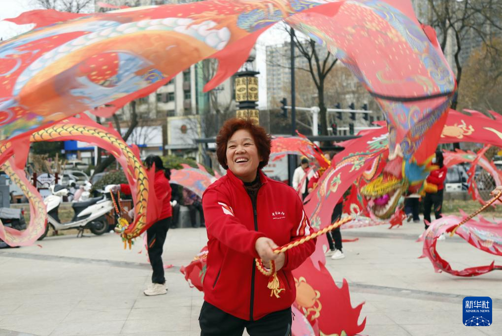 12月30日,在河南省洛阳市汝阳县刘伶广场,汝阳县鞭陀龙协会成员在舞龙迎新年。