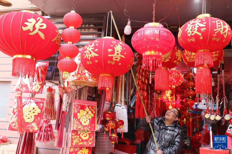 1月19日,在河南省焦作市博爱县柏山镇义沟村,村民在选购新年饰品。