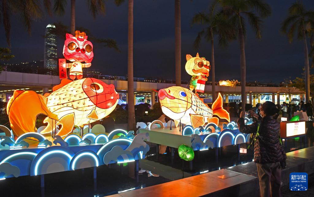 2月11日,人们在香港尖沙咀拍摄彩灯。