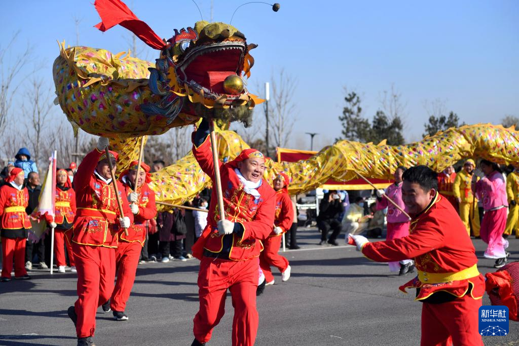 2月9日,河北省石家庄市元氏县群众表演舞龙。