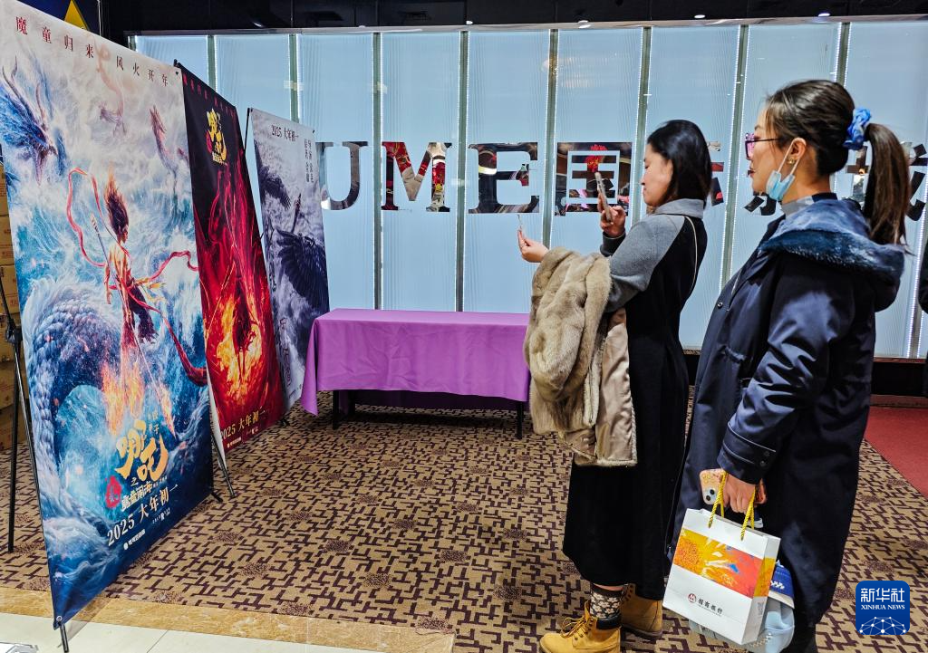 2月16日,在北京市东城区一家影院,观众在《哪吒之魔童闹海》电影海报前驻足。
