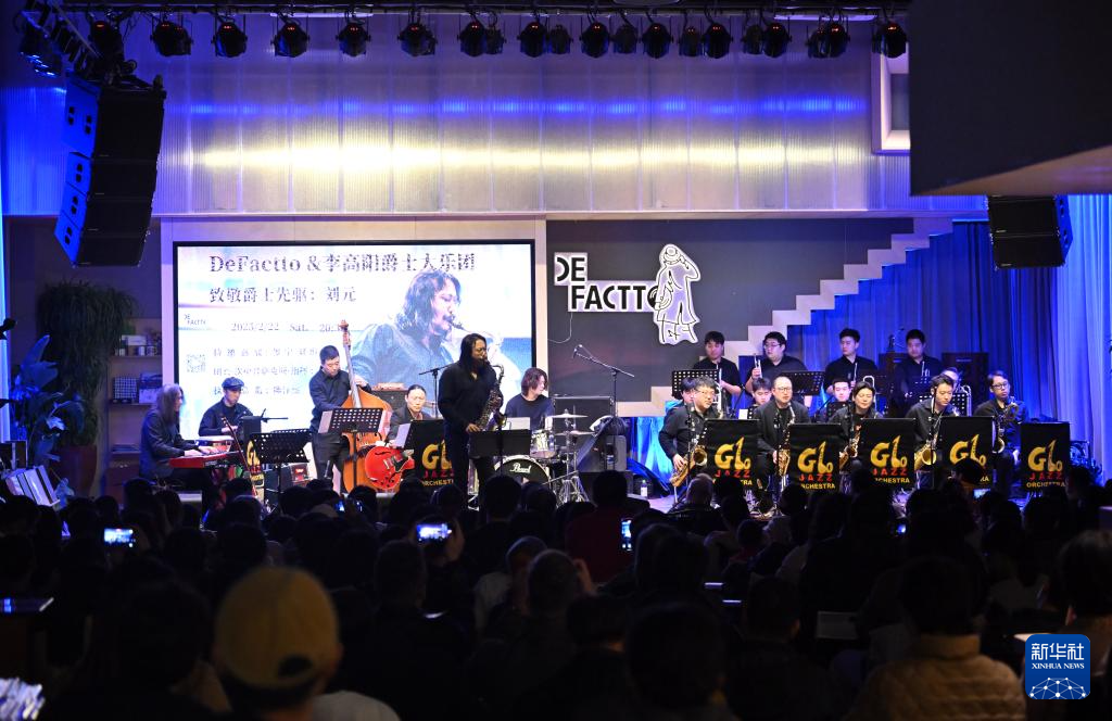 2月22日,DeFactto&李高阳爵士大乐团在北京798艺术区举行音乐会。20多位音乐家在演出中融合当代爵士、放克、拉丁、摇滚等元素,致敬中国爵士乐经典。