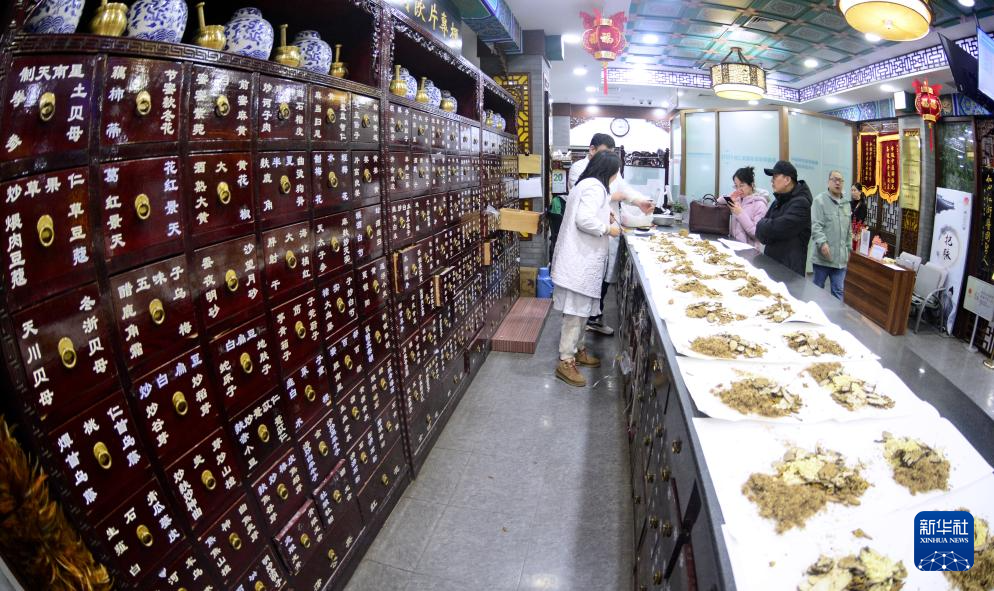 这是位于北京前门大栅栏商业区的同仁堂医馆中药药房(2月25日摄)。