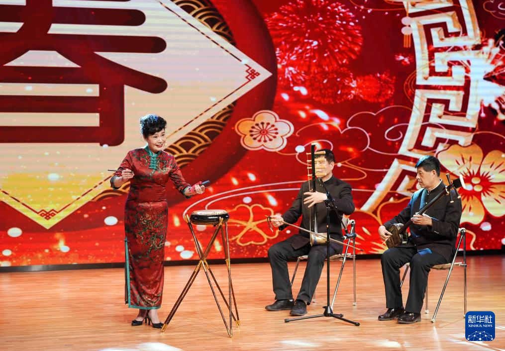 3月26日,张艳英(左)表演东北大鼓《小拜年》。