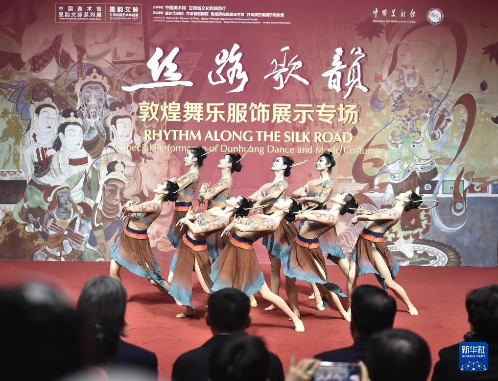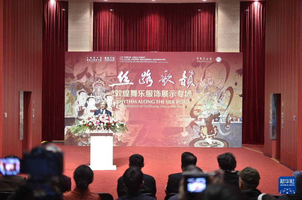当日,“丝路歌韵:敦煌舞乐服饰展示专场”活动在北京中国美术馆举行。作为“墨韵文脉——甘肃丝路艺术珍品展”的延伸内容,该专场活动由中国美术馆、甘肃省文化和旅游厅联合主办,以歌舞表演与服饰展示相结合的方式,展现敦煌艺术的精神内涵和丝路艺术的独特魅力。