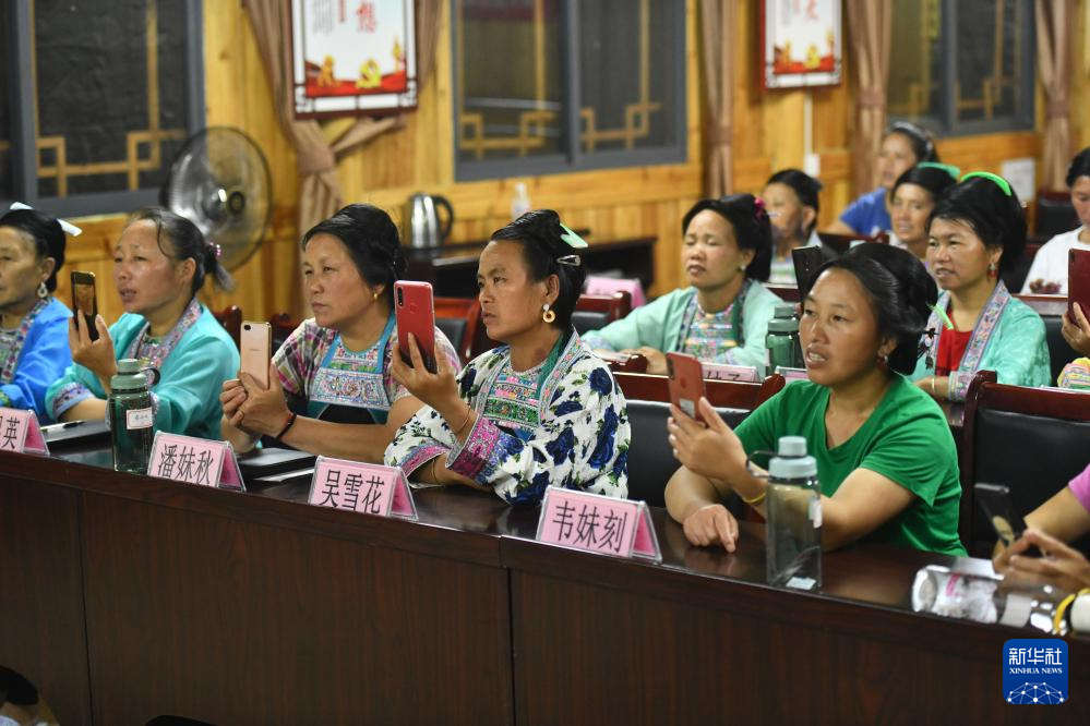 2020年8月11日,乌英苗寨妇女在夜校练习唱苗歌。