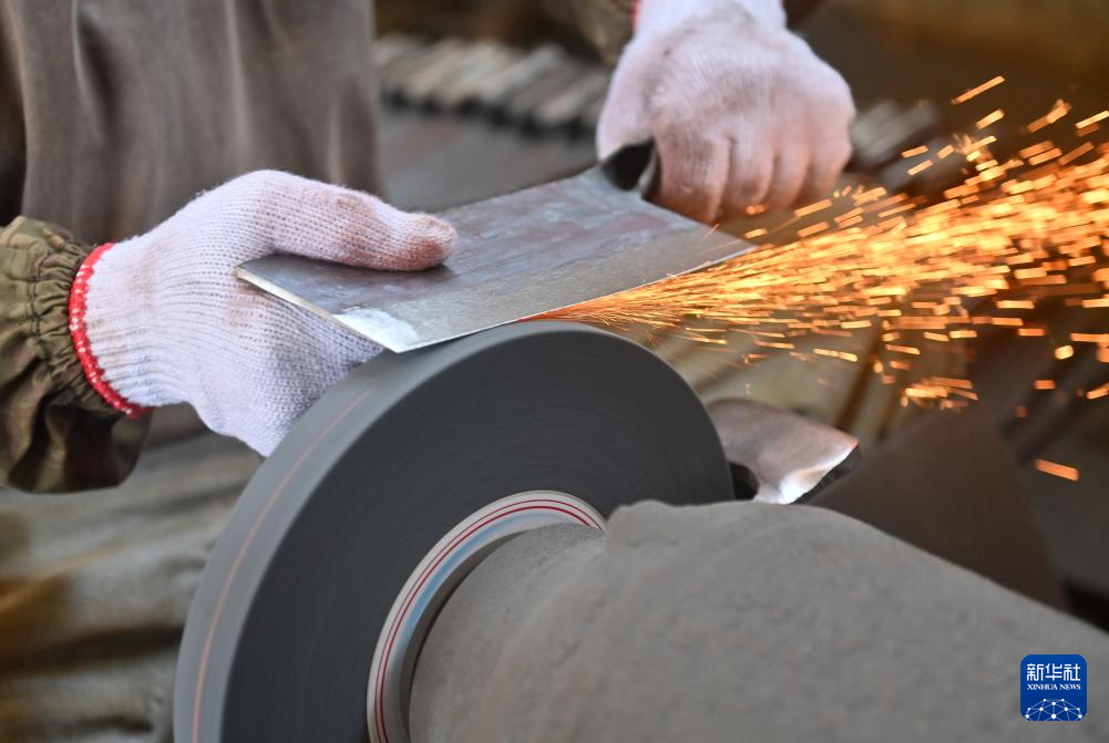 7月16日,广西隆安县雁江镇红良村,村民林玉珍在自己的作坊里打磨菜刀。