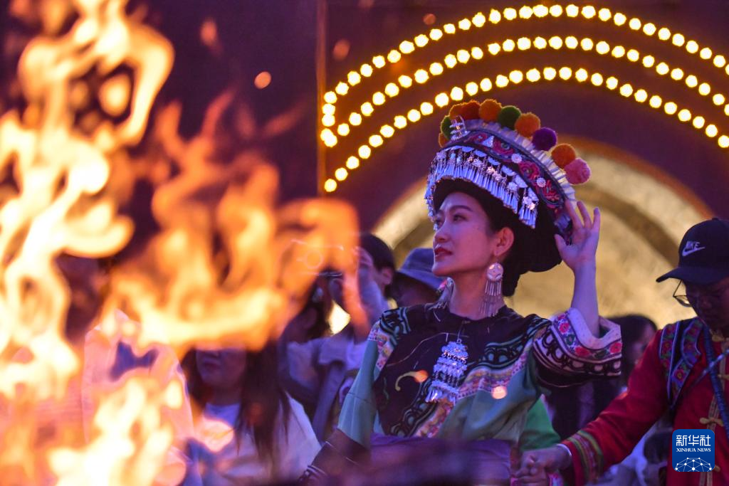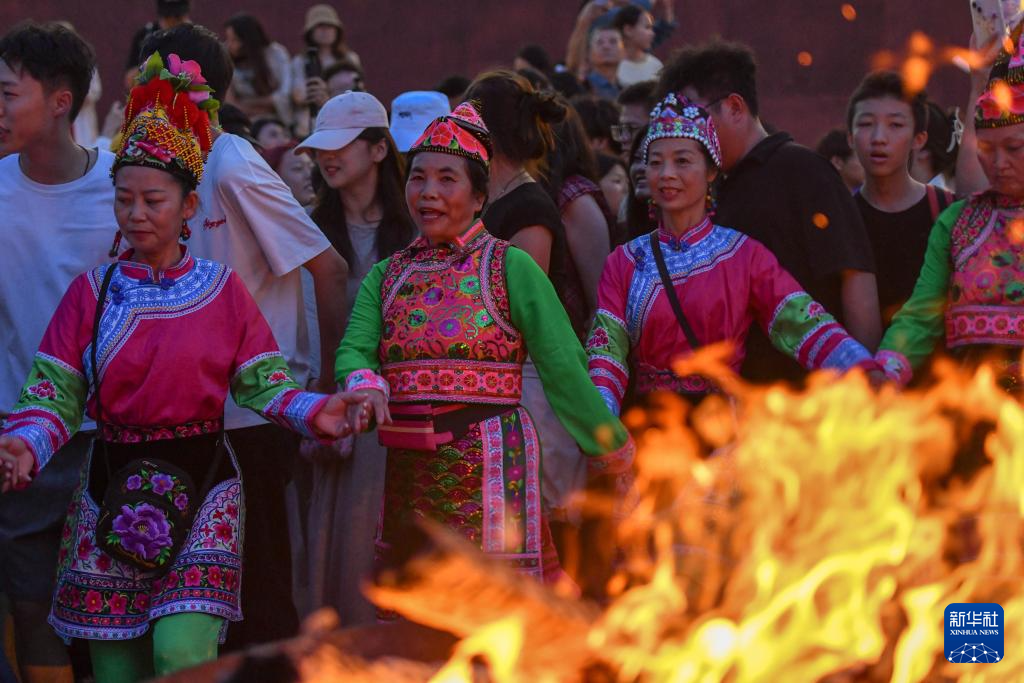 篝火熊熊燃烧,舞动间银饰叮当作响。在云南省大理白族自治州巍山彝族回族自治县,彝族打歌队的传承人举起芦笙,一声悠长的音律划破夜空。刹那间,踢踏舞步响彻大地,围成圆形的舞阵如涟漪般荡开。笛声、三弦声、脚踏声交织成古老的韵律——这是每年巍山火把节,拱辰楼广场上不变的风景。