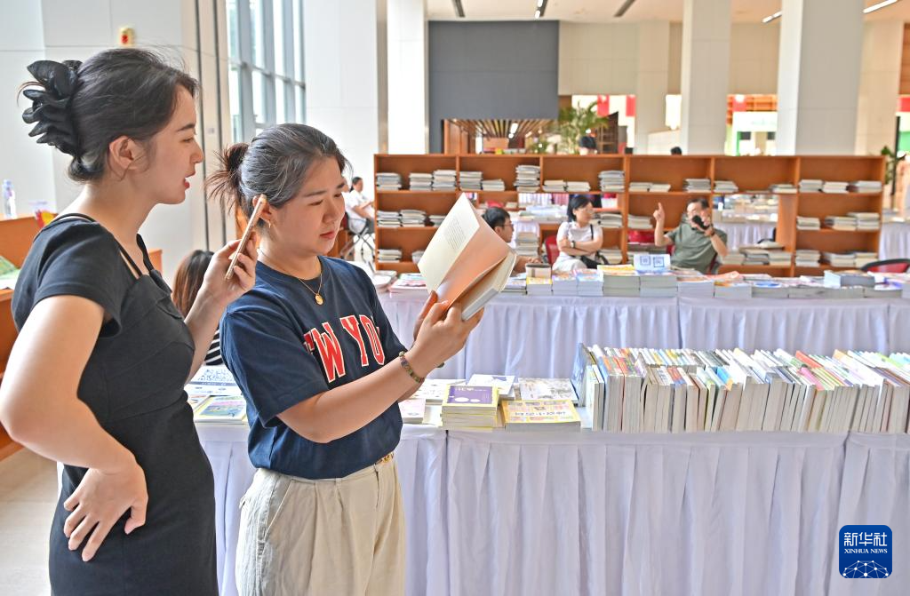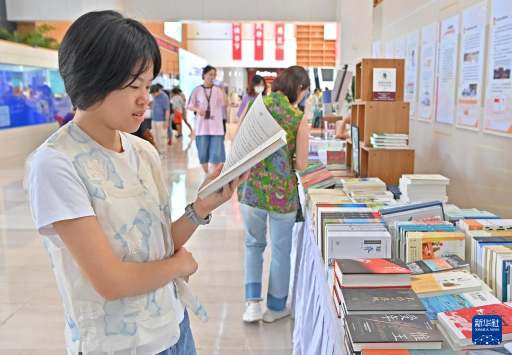 8月15日,读者在图书博览会阅览图书。
