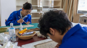 演员在吉鸿昌旧居实景演绎“光荣入党”片段(8月16日摄)。