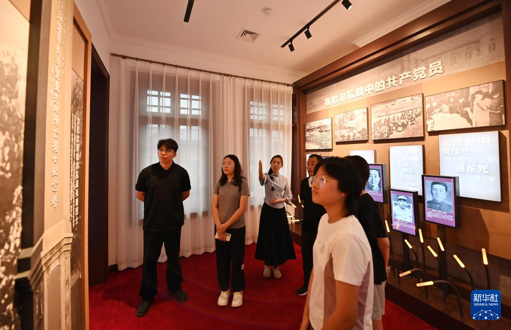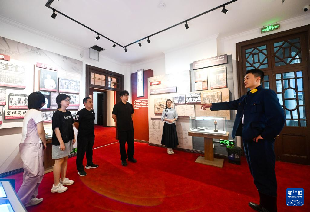 讲解员带领观众在吉鸿昌旧居参观(8月16日摄)。