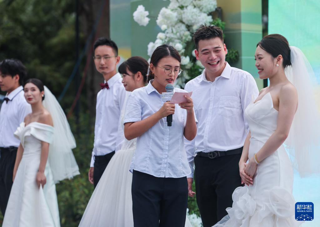 8月20日,新人在诸暨市东白湖镇斯宅村参加集体婚礼。