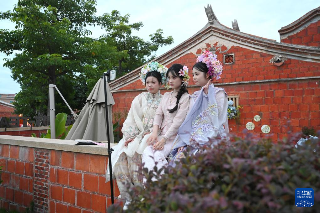 8月19日,游客在福建晋江梧林村体验旅拍。