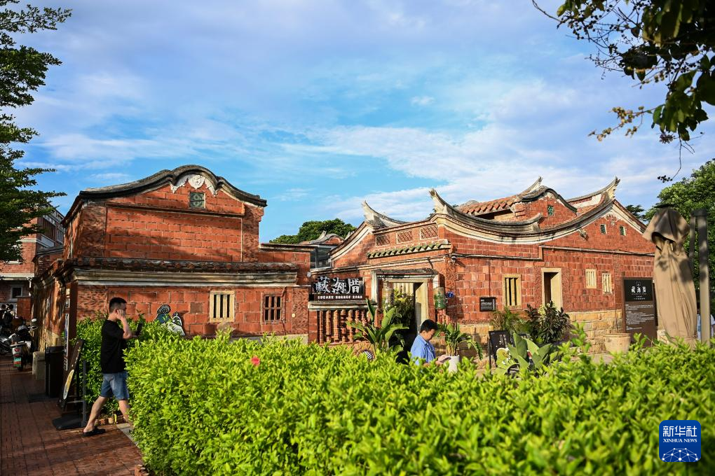 8月19日,人们在福建晋江梧林村的枪楼游玩。