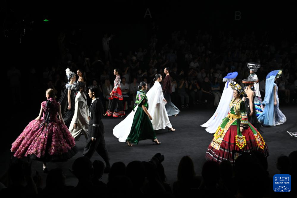 9月8日,中国国际时装周·楚雄时装周彝绣非遗创新专场在北京举行。手工刺绣匠人、设计师与模特同台,演绎融合非遗服饰元素的时尚作品。