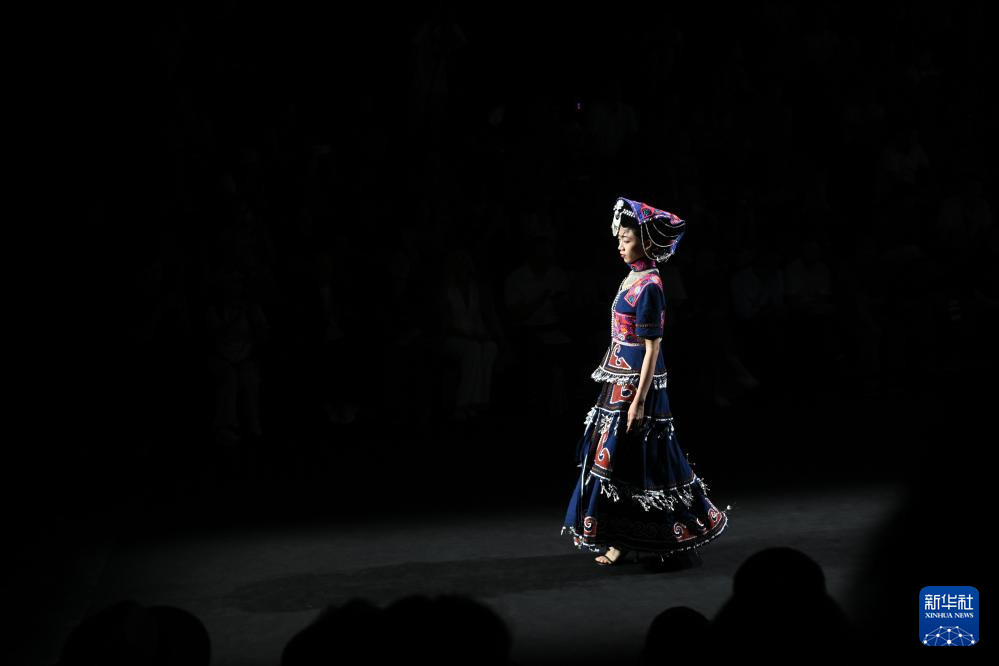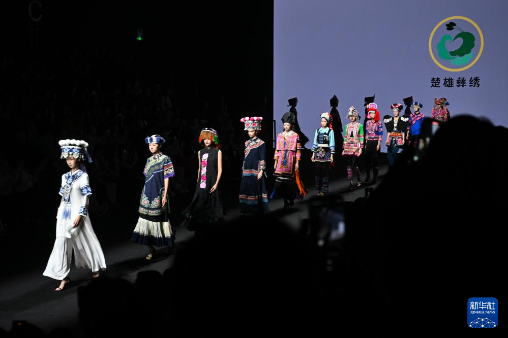 9月8日,模特在中国国际时装周·楚雄时装周彝绣非遗创新专场上展示时装。