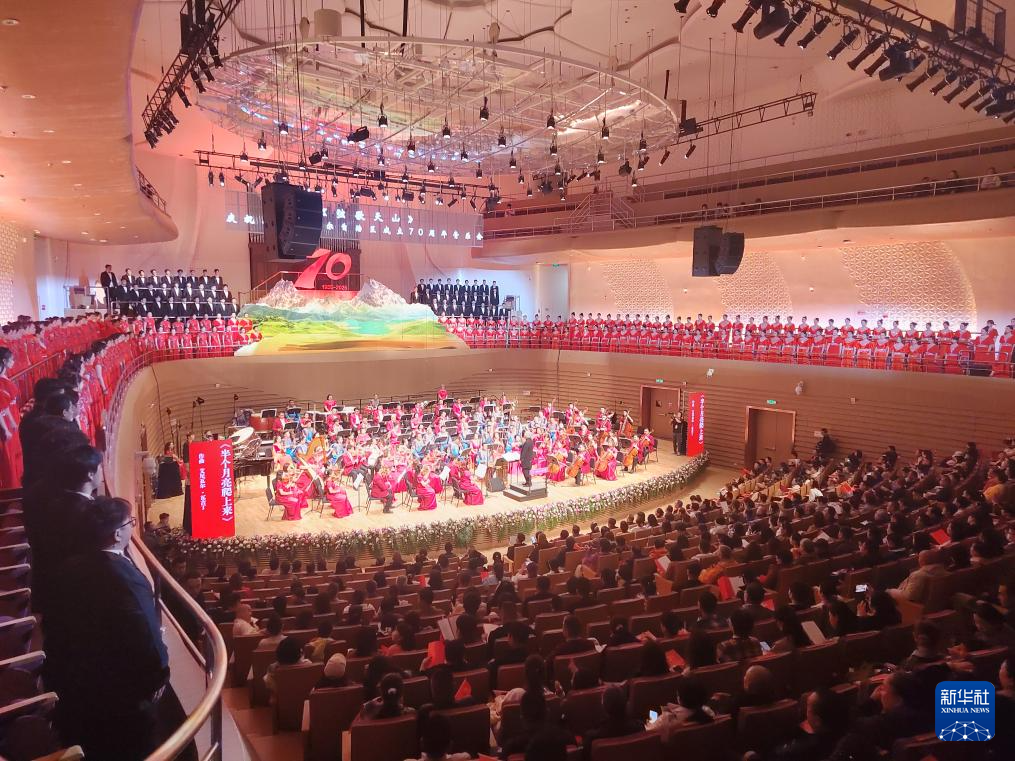 10月7日晚,《弦歌天山》庆祝新疆维吾尔自治区成立70周年音乐会在乌鲁木齐文化中心音乐厅举行。