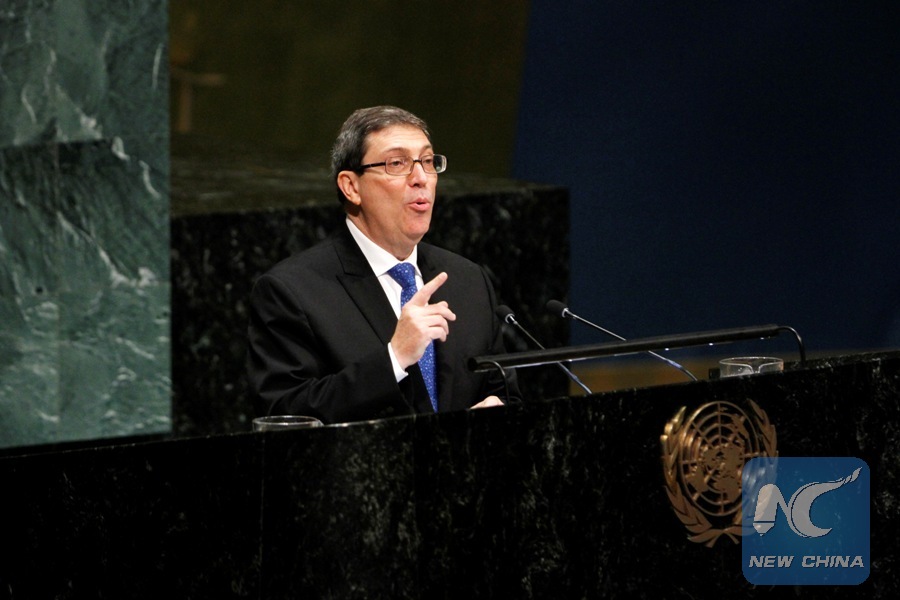 Cuban Foreign Minister Bruno Rodriguez addresses the UN General Assembly meeting at the UN headquarters in New York, Nov. 1, 2018. (Xinhua/Xie E)
