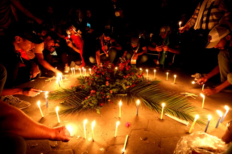 Protesters light candles during a demonstration at Tahrir square in Baghdad, Iraq, on Nov. 2, 2019. (Xinhua/Khalil Dawood)