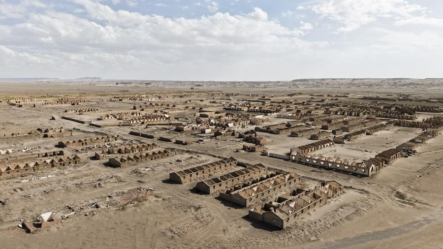 In the 1990s, depleted wells triggered an exodus from Lenghu, with its population plummeting to fewer than 300. Today, ruins stand as silent witnesses to that concluded chapter of industrial fervor, while a towering monument in Lenghu's No. 4 Cemetery honors over 400 oilfield workers and their family members who had laid down their lives -- some on duty and others due to illness, in this frontier outpost.