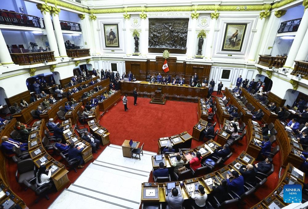 Peru's lawmakers demanded Boluarte appear at a Congress session to defend herself before voting to approve her impeachment on Thursday night. But Boluarte did not attend the meeting. The Congress passed the impeachment against her shortly afterwards. (Peru's Congress/Handout via Xinhua)