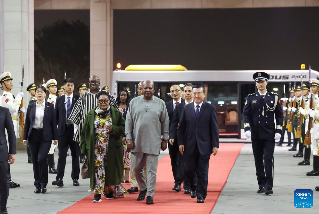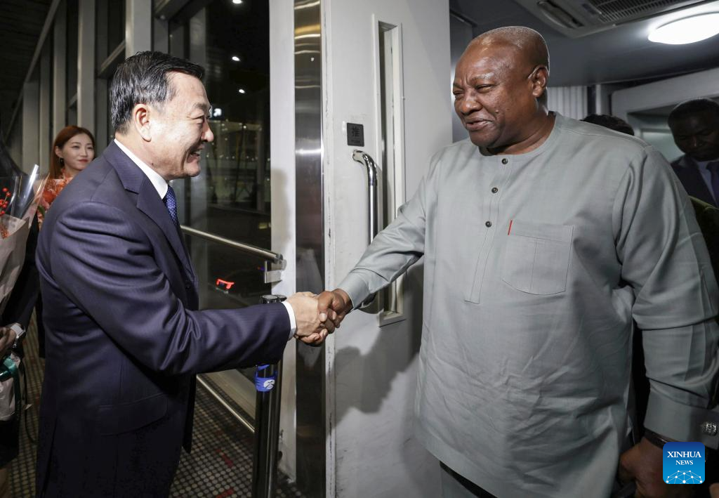 Ghanaian President John Dramani Mahama arrives in Beijing, capital of China, on Oct. 11, 2025, for the upcoming Global Leaders' Meeting on Women. (Xinhua/Liang Xu)